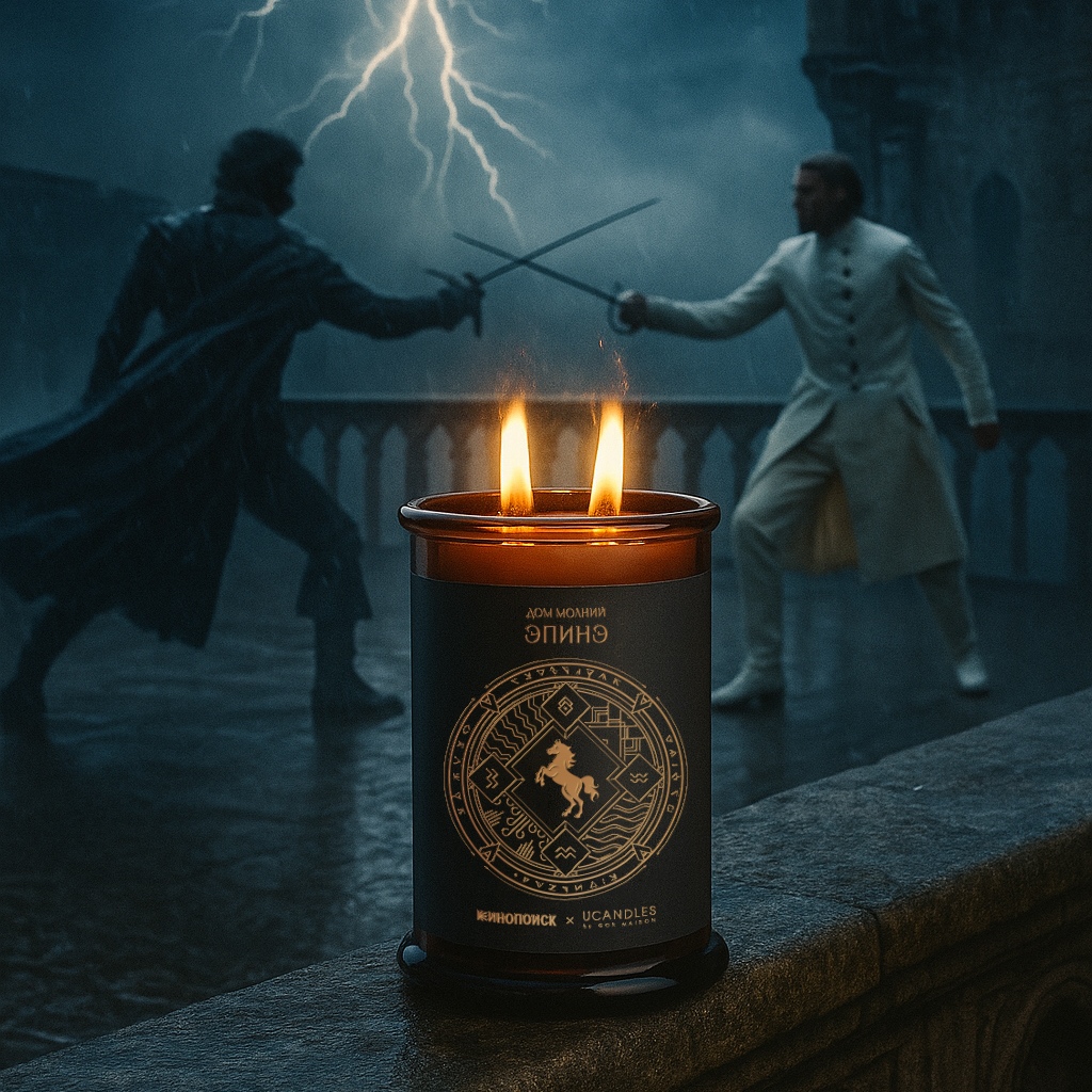 Дом Эпинэ - это вихрь эмоций, непредсказуемость и внутренняя яркость. Их сила подобна вспышке молнии: яркая, волнующая, тревожная.Этот аромат олицетворяет личную силу и тонкую эмоциональность, характерную для потомков древней крови. Свеча открывается свежим аккордом ели и цитрусов - как воздух, насыщенный озоном перед грозой.Это аромат тех, кто идёт туда, где небо разрывает пополам от молний.