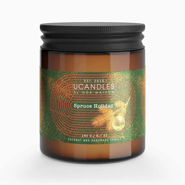 Свеча Spruce Holiday. Новогодняя ёлка украшена, за окном трескучий мороз, а внутри - тепло и празднично. Прямо как в детстве. Такие ассоциации напрашиваются первыми, когда вдыхаешь этот аромат. Ель, корица, цитрусовые и бергамот. Праздник уже здесь.