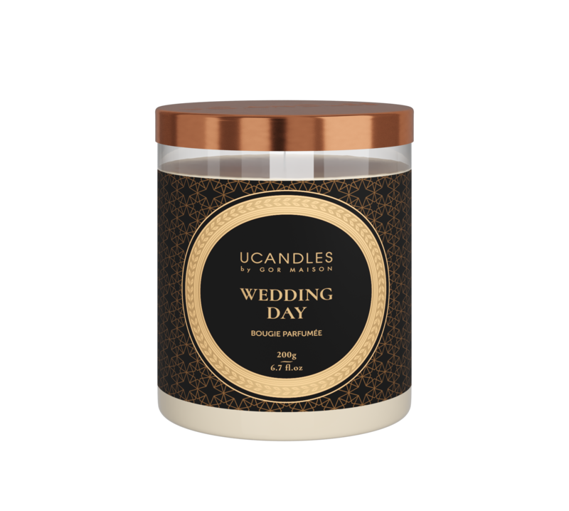 Wedding Day — аромат английского сада в день торжества. Почувствуйте себя в окружении таинственных тисовых лабиринтов, где цветут оранжерейные растения и луговые цветы, а воздух наполнен благородством и тихой радостью. Верхние ноты бергамота, личи и персика открываются свежо и фруктово — как первое утро в парке в день праздника. В сердце — жасмин, пион и апельсиновый цвет создают роскошный, насыщенный цветочный букет. Мускус, мох и древесные ноты в базе оседают терпким, элегантным шлейфом с характером. Classic Collection, 1 фитиль: 200г воска, время горения до 40 часов. Премиальное стекло с позолоченной крышкой — свеча становится частью интерьера задолго до первого розжига и остаётся декоративным объектом после. Wedding Day — безупречный свадебный подарок, подарок на годовщину или просто напоминание о самых красивых днях жизни. Производство: Ucandles by Maison Gor, Россия.