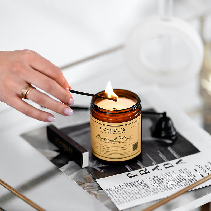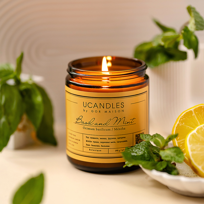Свеча Базилик и мята Basil & Mint — аромат средиземноморского лета в самый разгар дня. Словно кулинарный кутюрье смешал свежесть фруктов и зелени с острой нотой перечной мяты и тёплым дыханием базилика. Этот аромат бодрит, освежает пространство и настраивает на лёгкий, воздушный лад. Верхние ноты свежести, зелени, фруктов и цитруса открываются ярко и прохладно. В сердце — перечная мята и смородина добавляют пряную, слегка игривую глубину. Базовые ноты базилика и бальзама заземляют и придают аромату тёплый зелёный шлейф. Свеча Essential Collection с 1 фитилём: 190 г воска, время горения до 30 часов. Чёрная матовая крышка — лаконичный и стильный дизайн для любого интерьера. Аромат Basil & Mint доступен также в формате диффузора, спрея для дома и рефилла Ucandles by Maison Gor. Производство: Ucandles by Maison Gor, Россия.