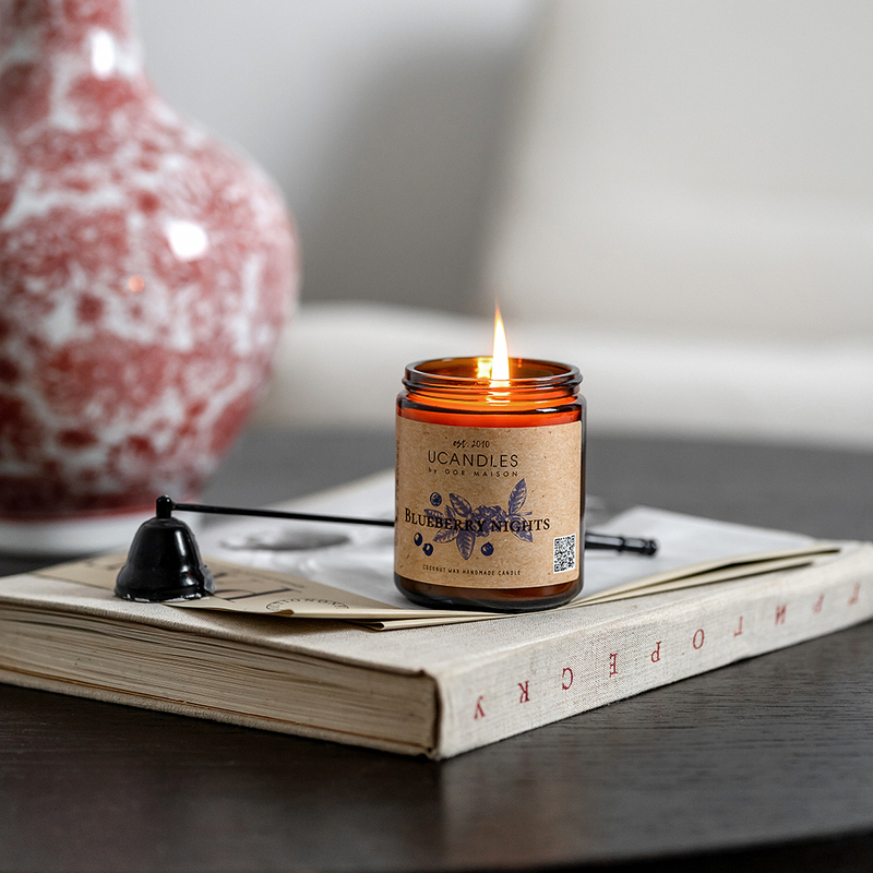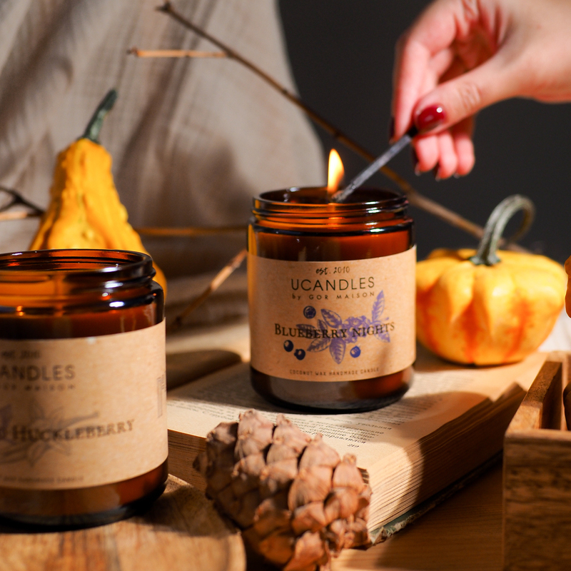 Черничные Ночи Essential — черничный десерт каждый вечер, без повода и без церемоний. Зажгите после работы, в ванной, на кухне — он работает везде. Фрукты и цитрус открываются свежо. В сердце черника, сливки и сахар — тот самый кремовый ягодный аромат, который сложно описать словами, но легко узнать. Базовые ноты ванили и карамели завершают тёплым и долгим шлейфом. Essential Collection: чёрная матовая крышка, 190г воска, 20–30 часов горения. Тот же аромат без лишних деталей. Также доступен в Classic (200г и 540г) и Travel (90г). Производство: Ucandles by Maison Gor, Россия.