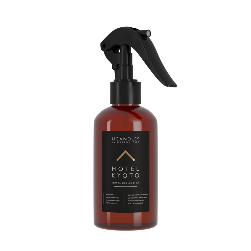 Интерьерный спрей Hotel Kyoto. Погрузитесь в атмосферу весеннего Киото с интерьерным спреем Hotel Kyoto. Аромат нежных лепестков сакуры, белого чая и тонкой древесины наполняет пространство ощущением чистоты, покоя и утончённой гармонии. Объем 250 мл.